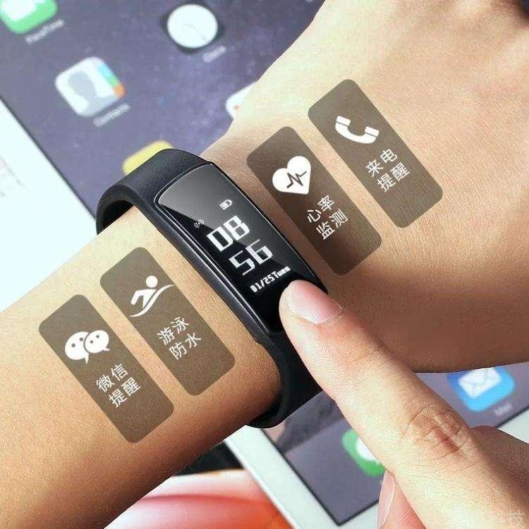 健康管理类:将手环佩戴在手腕上,通过运动传感器,监测用户每天的运动量、消耗的卡路里和睡眠质量。也可在平时简单训练中,为用户提供运动方面的健康建议,同时能督促运动量少的上班族定时起身运动,一般通过蓝牙将数据传送到手机上;